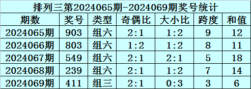 组选类型判断:排列三近期主要以组六号码为主,短期内不会改变,本期预计出现组六号码。