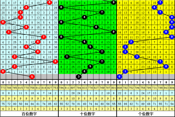 上期十位开出1路号码:4,本期十位关注0路号码:3;