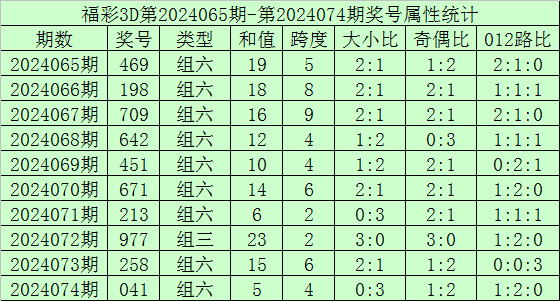 开奖回顾:福彩3D第2024074期开奖号:041,其中奖号和值:5,奇偶比1:2,大小比0:3。