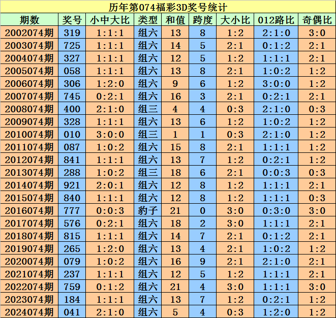 开奖回顾:福彩3D第2024074期奖号为:041。