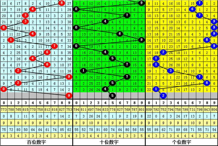 百位推荐:百位最近20期号码012路比为7:7:6,目前0路号码遗漏0期,1路号码遗漏5期,2路号码遗漏1期,另外0-9号码遗漏期数分别为: