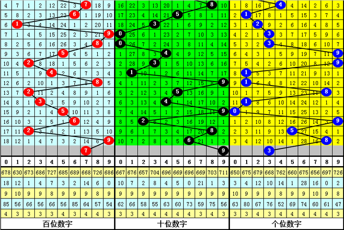 末位跨度分析:前3期末位奖号为9-5-8,最近两期末位奖号跨度为4、3,末位奖号跨度历史上连续两期开出4、3的现象共123次,其最近两次奖号为: