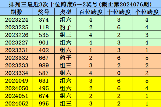 第2024049-第2024051期奖号:631、495、674,其下期奖号为:995,中位号码跨度为3;