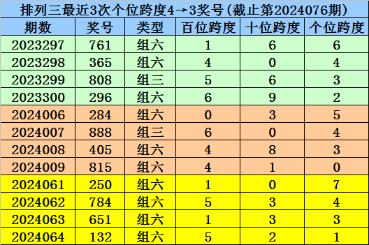 第2024061-第2024063期奖号:250、784、651,其下期奖号为:132,末位号码跨度为5;