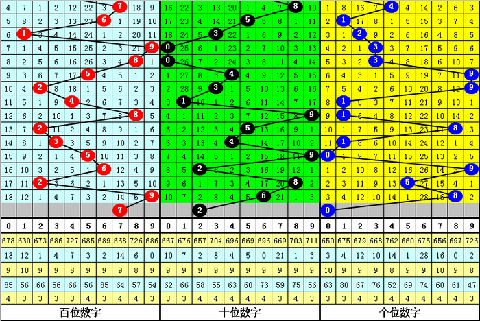 个位:1、2路号较热,本期防0路号反弹,关注0。
