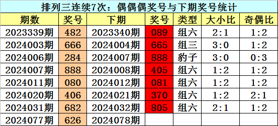 上期回顾:排列三2024077期奖号为:626。类型:组三,奇偶:偶偶偶,大小:大小大。