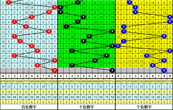百位目前最冷号码为:0,当前遗漏19期,该号码历史最大遗漏为85期,本期没有解冻的迹象,继续放弃;