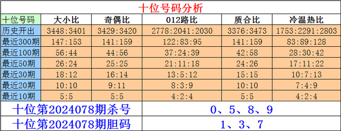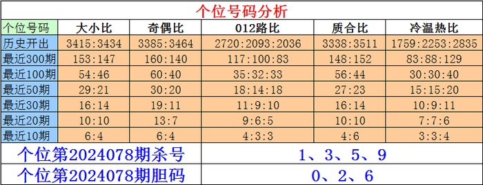 近期个位合数号码出现频率较低,最近2期连出,明显转热,本期预计奖号再为合数;近期该位大号走势较冷,最近4期连出大号,大号走势转热,本期预计再出大号。个位杀号:1359,胆码关注:026。