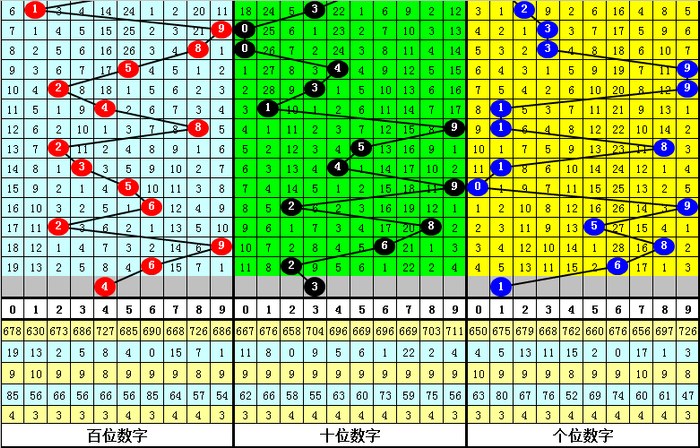 百位号码奇偶比为6:3,偶数走冷,本期看好偶数号码出现;大小比为7:2,小号表现较冷,本期看好开出小号。