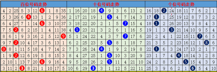 百位号码:前5期奖号为:2、0、2、6、3,振幅为6点,分布较分散,本期看好百位走平,注意号码3。