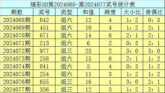 开奖回顾:福彩3D第2024077期奖号:336。