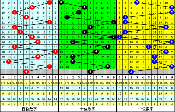 另外,在组选0-9的号码分布中,号码3、8表现最冷,开出3次;号码0走势最热,开出了11次。本期防号码组038全部轮空。