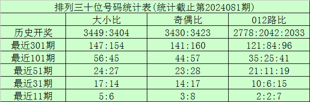 连续11期开奖中,号码012路比为5:1:5,1路号码较冷,本期012路号码分别轮空:2期、9期和0期,个位近期注意0路号码开出。