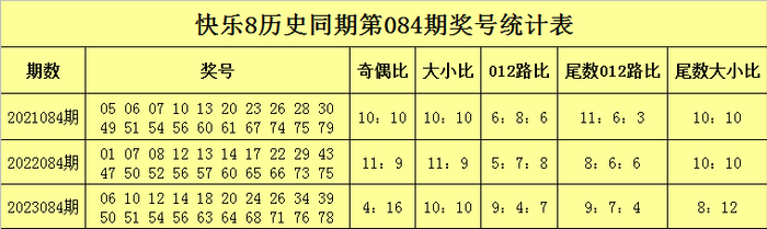 沧海快乐8第2024084期历史同期奖号尾数分析