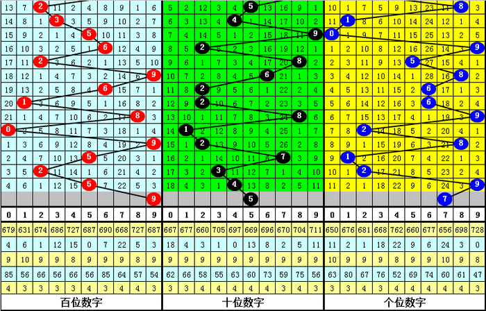 三、体彩排列三前9周星期四奖号分别开出:859-314-805-296-495-765-132-258-126,其中号码012路比为9:6:12,奇偶比为14:13,大小比为15:12;