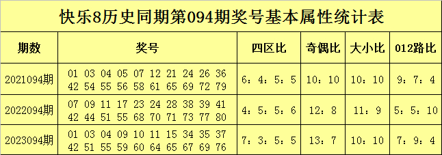 万妙仙快乐8历史同期第094期奖号基本属性分析