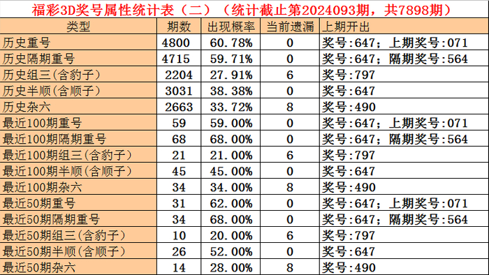 上期奖号:福利彩票3D第2024093期开出奖号647。