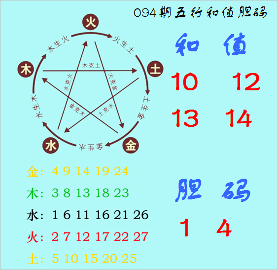 福彩3D第2024094期神算天五行和值胆码图