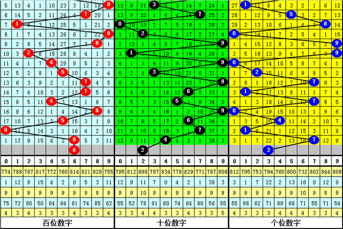 第三位上期开出奖号7,走大6点,本期看好该位走小,参考号码3。