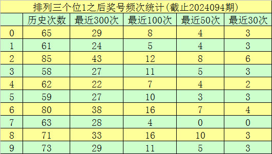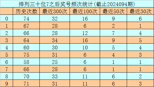 第二位杀号:第二位上期开出奖号为7,该位历史上奖号7开出了672次,最近100次第二位奖号出现7后,下期落号0-9次数从高到低分别为:号码3、0→16次,2→12次,8、9→11次,4→10次,1、5、6、7→6次。