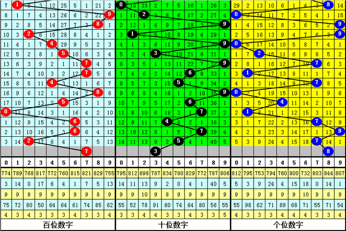 一、在下期开奖中,百位号码奇偶比为2:5,大小比为3:4,012路比为3:1:3,本期百位注意号码:2、6、7,胆码关注奇数:7。