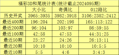 和尾大小分析:在前50期开奖中和尾大小比为23:27,小和尾表现较热;在前20期开奖中和尾大小比开出10:10,和尾大小比例相当,本期预计和尾走小。