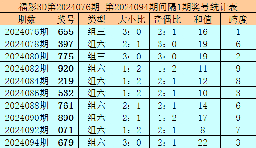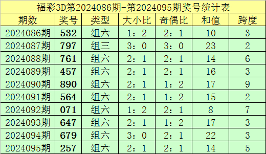 其中大小比2:1,奇偶比2:1,和值14,跨度5。