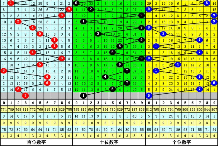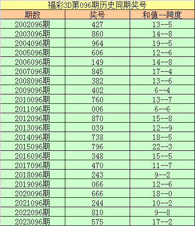 福彩3D上期奖号为257,去年同期与今年同期前20期奖号对比。