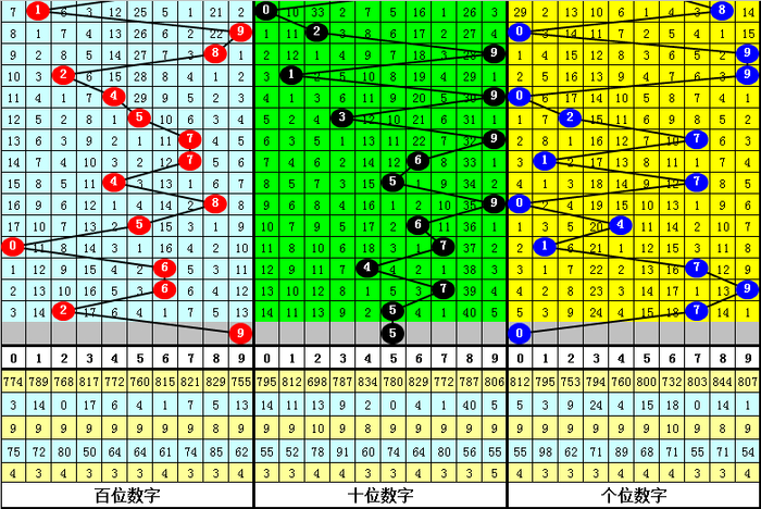 第三位上期开出奖号7,走小2点,本期继续关注该位走小,看好号码0。