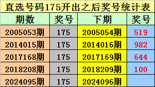排列三直选175出现之后下期奖号分别为:519-982-644-100。