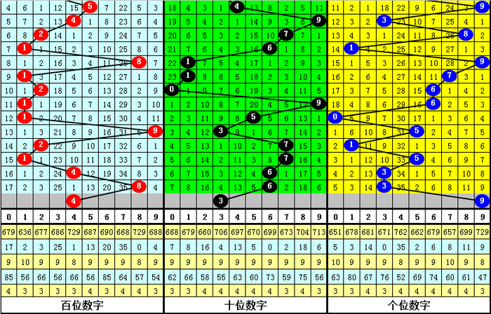 另外,在组选0-9的号码分布中,号码1、3、8表现最冷,开出7次;号码4走势最热,开出了15次。本期预计号码组1348中落号,参考号码148。