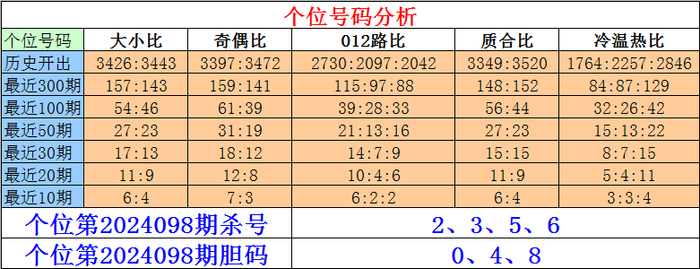 近期十位偶数表现较冷,最近2期连出,开始走热,本期预计再出;该位温冷号码近期出现较少,目前轮空1期,本期防温冷号码再次解冻。十位杀号:0245,胆码关注:189。