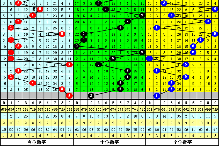 二、在最近22期开奖中,奖号:1、2、9、6,开出期数最多,本期注意这四码中落号,关注号码1;遗漏期数最多的三码奖号为:0、9、2,当期开奖一般不会全部出现冷码,本期可以排除号码0。