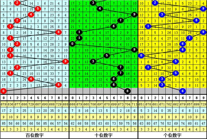 百位:1、2路号较热,本期防0路号反弹,关注0。