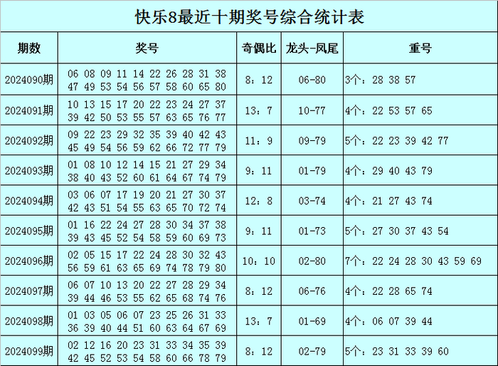 福彩快乐8第2024099期开出奖号:02 12 16 20 23 31 33 34 35 39 42 45 52 53 54 58 60 66 78 79,其中奖号奇偶比为8:12,出现5个重号23、31、33、39、60,开出连码33 34 35、52 53 54、78 79。