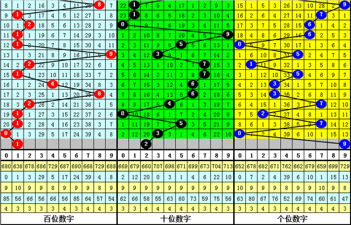 首位号码:上期为:0,遗漏20期,相对走冷,热码近期活跃,本期重防热码出现,参考1。