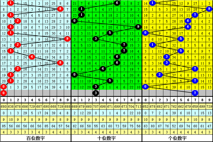 012路类型分析:上期出现全0路组合,在连续100期开奖中,全0路组合开出5期,本期注意2路号码断档,预计开出两个0路号码+一个1路号码。