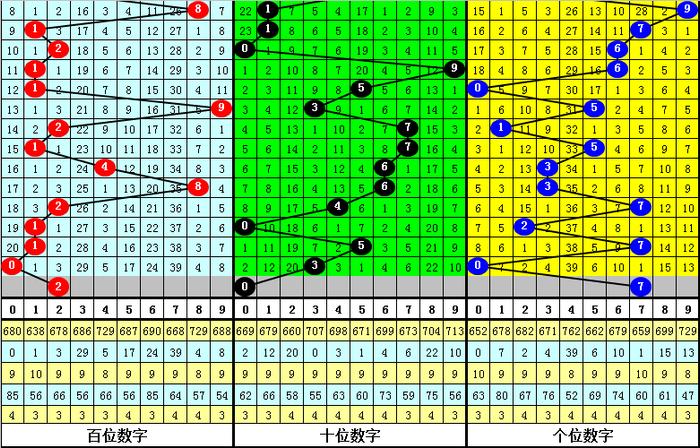 3.号码012路比为7:9:8,0路号码走冷,本期号码012路比参考1:1:1。