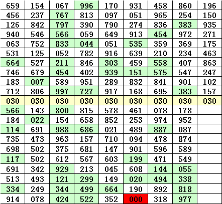 另外,历史上直选号码030开出9次,其下期开出奖号为:566、143、800、815、578、461、078、178,前后10期分别开出号码: