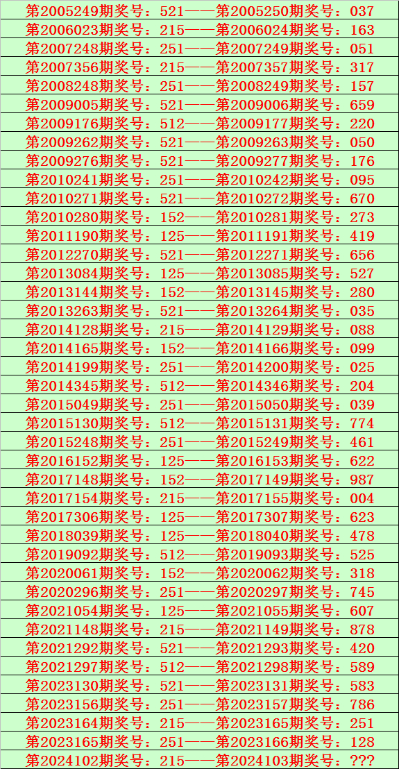 开奖回顾:体彩排列三第2024102期奖号为:215,类型:组六。