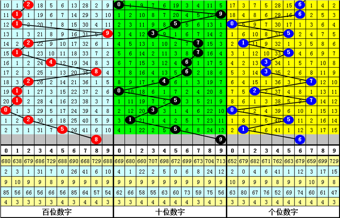 百位上期开出号码5,为奇数,偶数号最近出现次数较少,上期轮空之后,本期注意偶数号码回补,关注号码8。