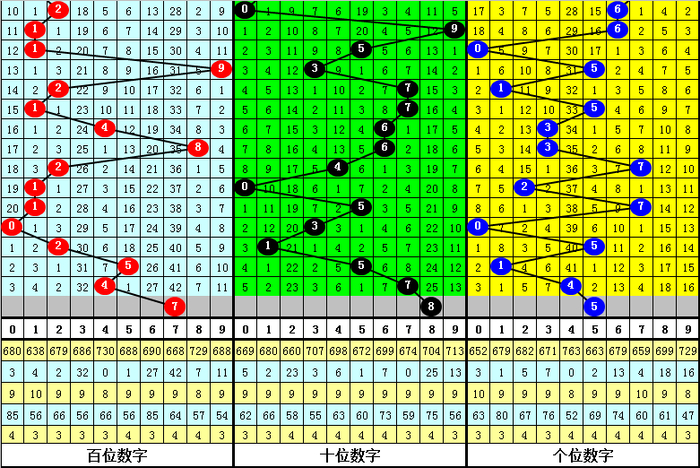 和尾推荐:排列三第105期历史同期,和尾大小比开出9:10,012路比开出3:8:8,奇偶比开出9:10,奖号和尾开出期数分别为:和尾 7→6期,和尾2→5期,和尾0、8→2期,和尾1、3、4、5→1期,和尾6、9→0期,本期适当关注小和尾出现,参考和尾0。