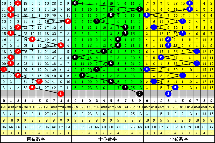 在历年同期中两码合开出年限分别为:0出现8年,2、7出现7年,4、9出现6年,6出现5年,3出现4年,8出现3年,1、5出现2年,第2024105期预计两码合出现:1、2、7。