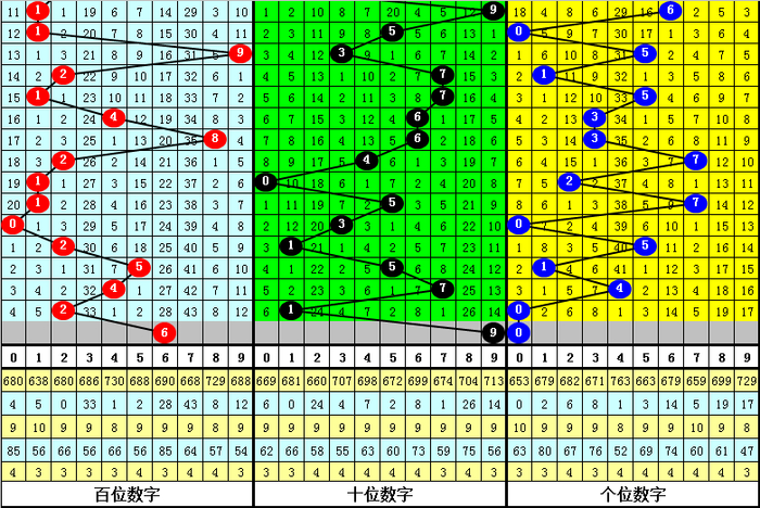 百位:当前遗漏最大的号码为7,遗漏43期,历史上该号最大遗漏为64期,本期百位继续排除号码7。