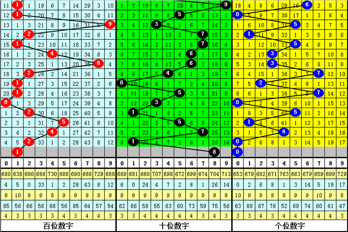 百十位差推荐:前三期百十位差分别开出0-3-1,本期预计百十位差走大,注意7出现。