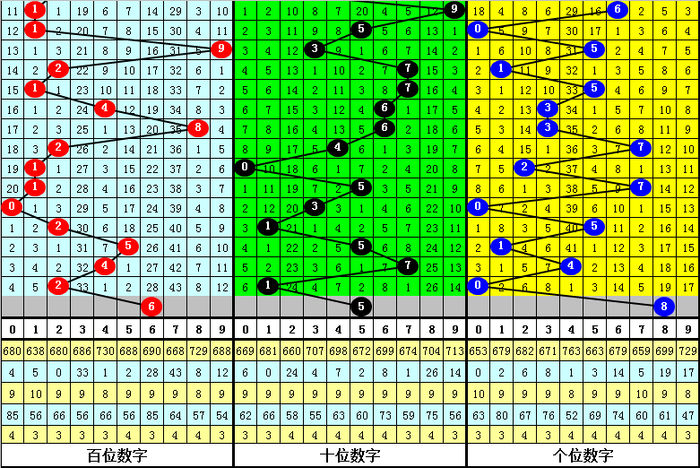 尾号球:上期奖号为0,开出小号、偶号,该位前10次开出小号、偶号的现象时其奖号分别为:250、784、132、590、012、232、150、102、030、474,其中尾号球012路比为4:2:4。