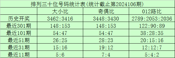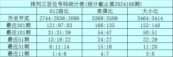 在连续11期奖号中,该位012路比为5:4:2,2路号码较少,目前012路号码遗漏期数分别是:0期、1期和3期,本期预计出现0路奖号。