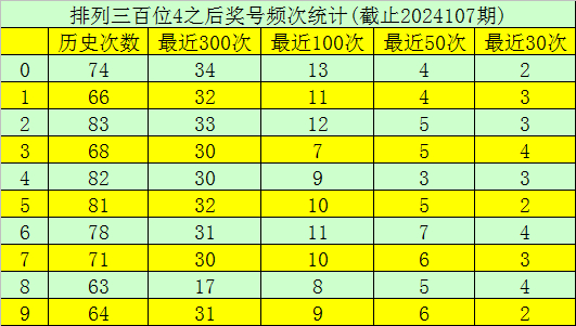 第一位杀号:上期第一位奖号为4,第一位奖号4历史上出现731次,前100次该位开出奖号4之后,下期号码0-9出现次数从高到底分别为:号码0→13次,2→12次,1、6→11次,5、7→10次,4、9→9次,8→8次,3→7次。