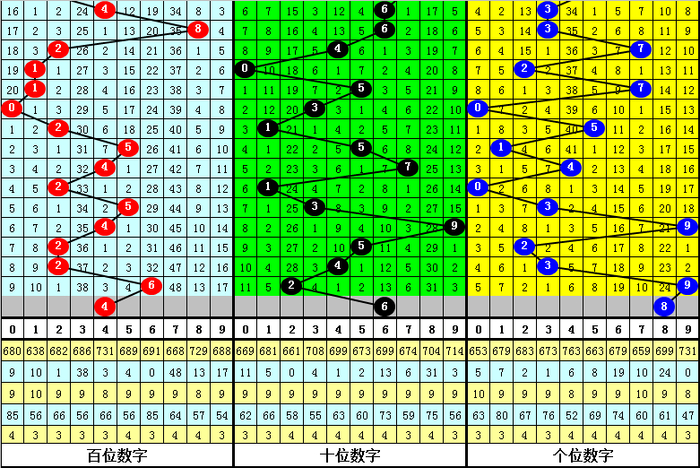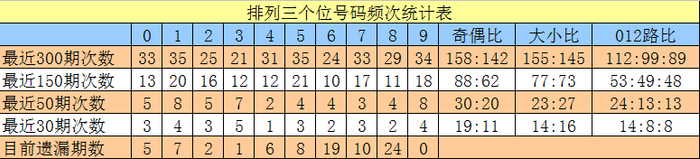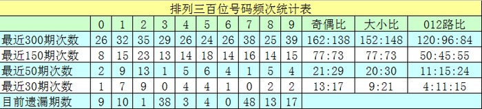 百位号码:前50期走势活跃的号码为:2开出13个,1开出9个,5开出6个;走势最冷的号码为:3、7开出1个,0开出2个。奖号012路比开出11:15:24,奇偶比开出21:29。本期百位杀排除:3、5,注意号码4、7、9,胆码参考4。