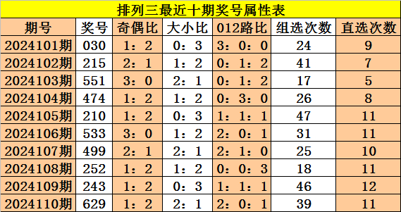 上期回顾:体彩排列三第2024110期奖号:629,奇偶比1:2,大小比2:1,012比2:0:1。